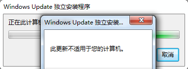 到这里,补丁下载好了,安装出错了,显示“此更新不适用于您的计算机”