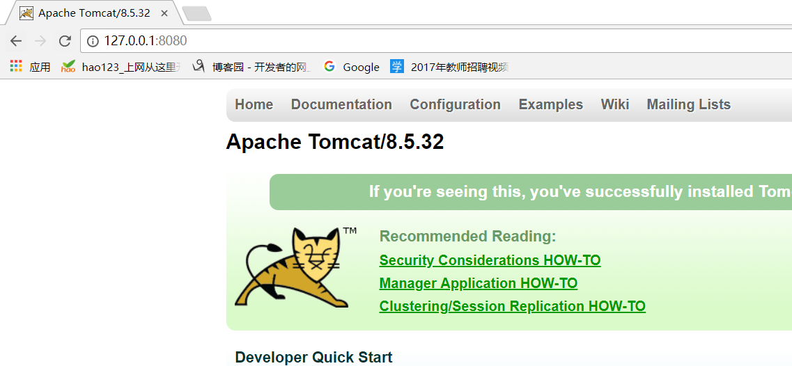 ①、启动一个 tomcat,浏览器地址栏输入 127.0.0.1:8080,出现如下界面