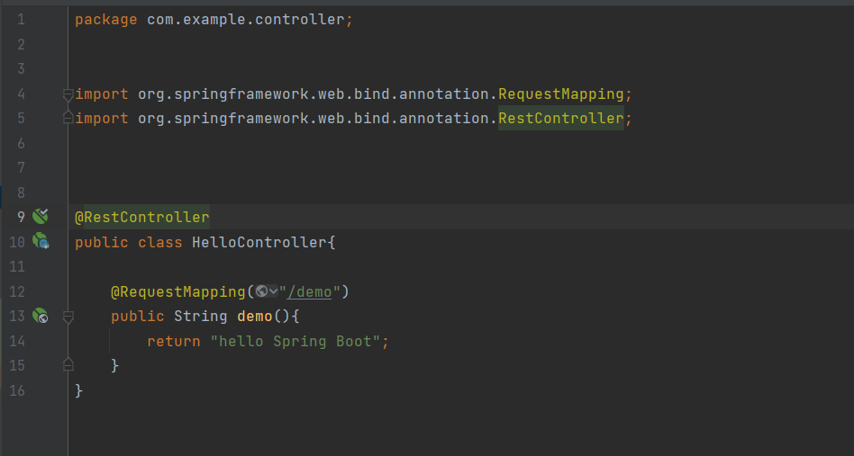 这里的“/demo”取决于HelloController类中 @RequestMapping(“/demo”) 引号里的内容!