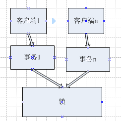 如今系统并发现象,引起的资源急用,出现的阻塞死锁一直是技术人员比较关心的。这就涉及到了事务, 事务分五种隔离级别,每个隔离级别有一个特定的并发模式,不同的隔离级别中,事务里锁的作用域,锁持续的时间都不同,后面再详细介绍事务。这里看下客户端并发下的锁与事务的关系, 可以理解事务是对锁的封装,事务就是在并发与锁之间的中间层。如下图: