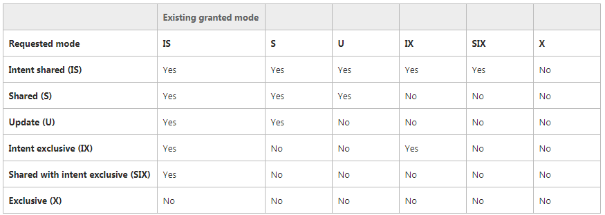 | 更新锁 (U锁) | 它是S与X锁的混合,更新实际操作是先查出所需的数据,为了保护这数据不会被其它事务修改,加上U锁,在真正开始更新时,转成X锁。U锁和S锁兼容, 但X锁和U锁不兼容。 |