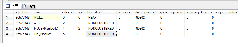 (1)这个product表并没有建聚集索引,是在堆结构上建立的非索聚索引,index_id=0 是堆, index_id=2和4 又是分别二个非索聚索引