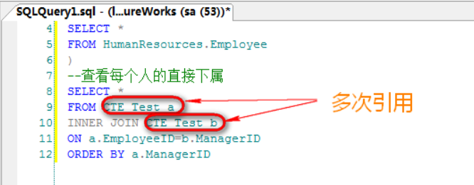 4.可以在一个语句中多次引用公用表表达式(CTE)