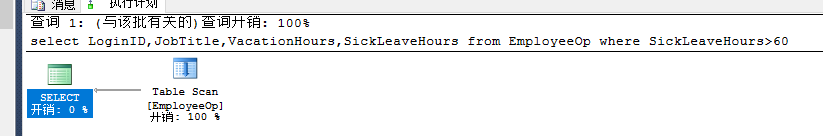 select LoginID,JobTitle,VacationHours,SickLeaveHours from EmployeeOp where SickLeaveHours>60--table scan |