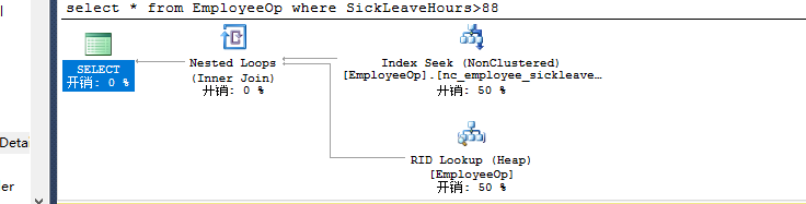 select * from EmployeeOp where SickLeaveHours>88 --nc_employee_sickleavehours key连 c_ID聚集索引 |