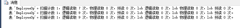 select * from EmployeeOp<br>--创建非聚集索引<br>create nonclustered index nc_EmployeeOp on employeeop (VacationHours,SickLeaveHours) include (LoginID,JobTitle)<br><br>create nonclustered index nc_EmployeeOp_Vacation on employeeop(VacationHours)<br>include(LoginID,JobTitle)<br><br>--创建聚集索引<br>set statistics io on<br>create clustered index c_Employee_id on employeeop(BusinessEntityID) --7,9,9<br>set statistics io off |