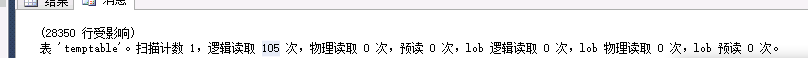 create table temptable(c1 uniqueidentifier,c2 int)declare @c int set @c=0 while @c<50000 begin insert temptable values(newid(),@c) set @c=@c+1 end create clustered index c_temptable_c1 on temptable(c1)set statistics io onselect * from temptable where c1<='D144242D-BFA3-4A8C-8DCE-C35A880E8BBE' --0.11set statistics io off |