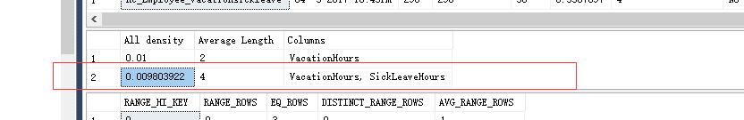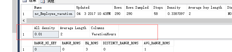 --查看统计信息dbcc show_statistics('Employeeop',nc_Employee_vacation)--密度:0.01dbcc show_statistics('Employeeop',nc_Employee_vacationsickleave)--密度:0.009 |