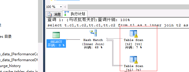 drop table t1drop table t2create table t1(c1 int identity(1,1),c2 int)insert t1 values(2)declare @count intset @count=0while @count<1000begininsert t1 values(1)set @count=@count+1endcreate table t2(c1 int identity(1,1),c2 int)insert t2 values(1)declare @count intset @count=0while @count<1000begininsert t1 values(2)set @count=@count+1endselect t.c1,t.c2,tt.c1,tt.c2 from t1 as t inner join t2 as tt ont.c2=tt.c2--0.045 |