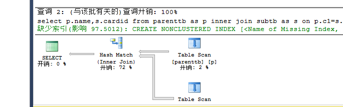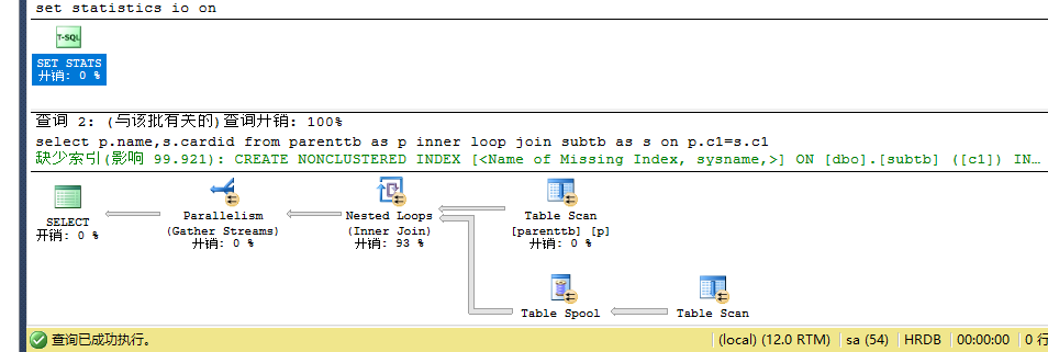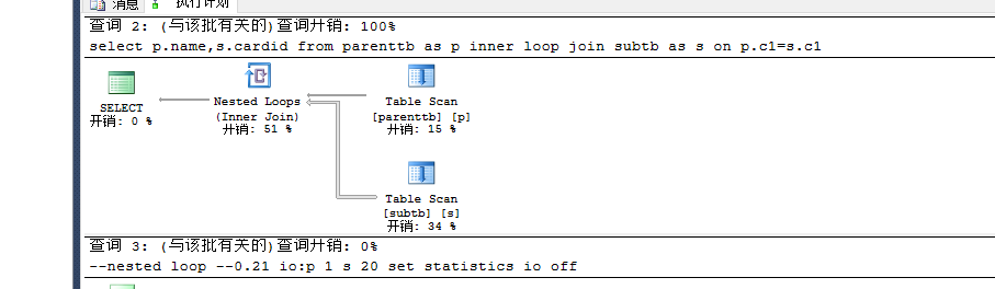 set statistics io onselect p.name,s.cardid from parenttb as p inner loop join subtb as s on p.c1=s.c1--nested loop --0.21 io:p 1 s 20set statistics io off |