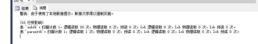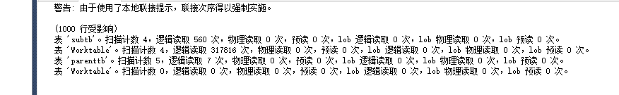 set statistics io onselect p.name,s.cardid from parenttb as p inner join subtb as s on p.c1=s.c1--hash --0.5 io:p 7 s 140set statistics io offset statistics io onselect p.name,s.cardid from parenttb as p inner loop join subtb as s on p.c1=s.c1--loop --64 io:p 7 s 560set statistics io off |