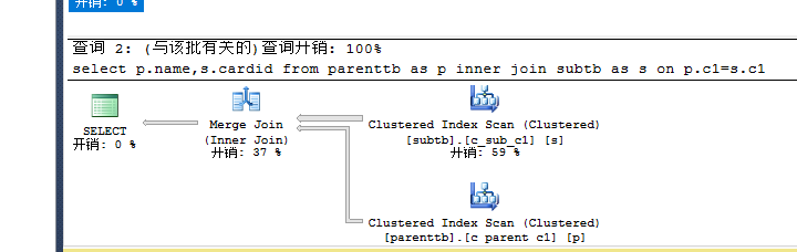 set statistics io onselect p.name,s.cardid from parenttb as p inner join subtb as s on p.c1=s.c1--Merge --0.16 io:p 6 s 7set statistics io off |