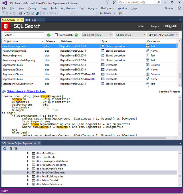 SQL Search 是由 Redgate 软件公司开发的一款 SQL Server Management Studio (SSMS) 和 Visual Studio 的插件,其主要功能是在 SQL Server 数据库中快速搜索 SQL 代码和文本。