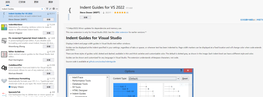 - 安装和使用:Indent Guides 可以直接从 Visual Studio 的扩展管理器中搜索并安装。一旦安装,它会自动应用于所有支持的语言项目中,但在某些情况下可能需要重启 Visual Studio 才能使更改生效。