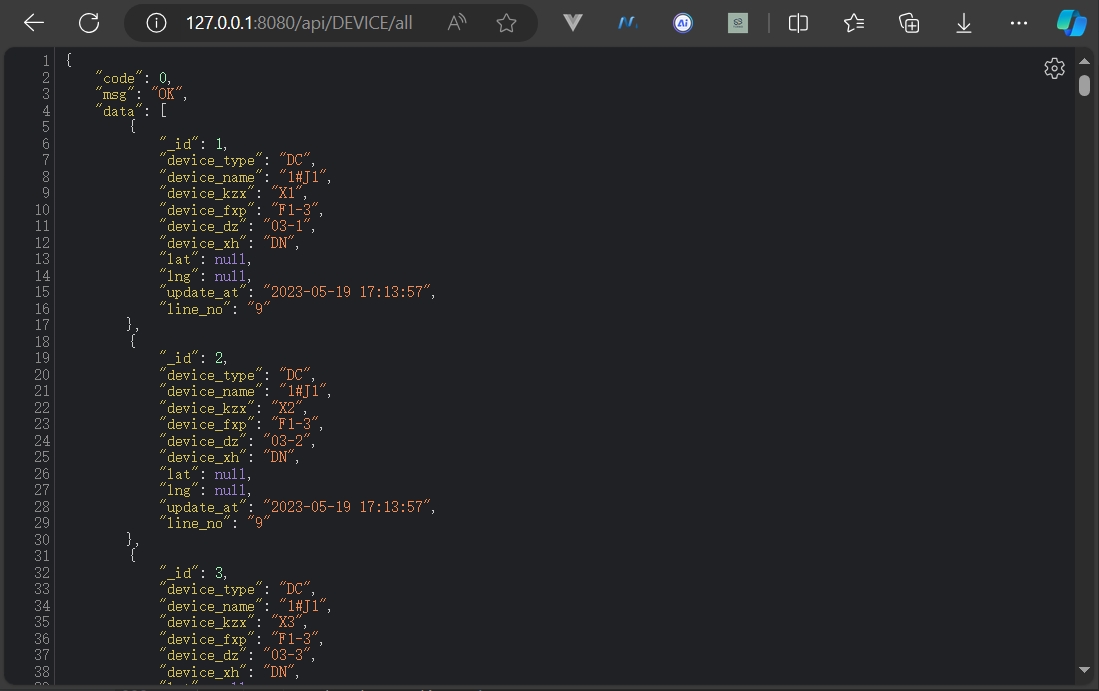 随便找个测试获取所有数据:http://127.0.0.1:8080/api/DEVICE/all