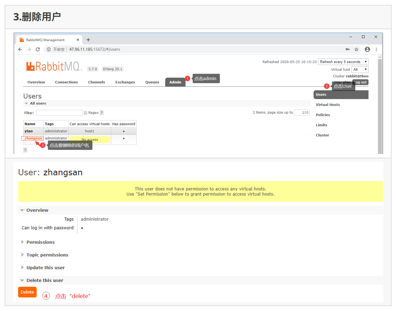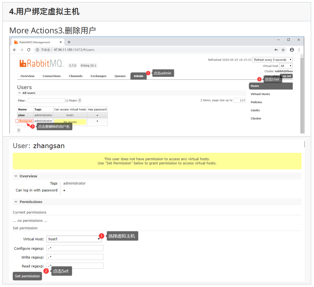三、RabbitMQ⽤户管理