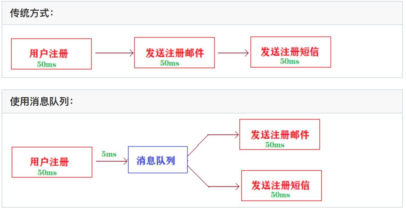 场景说明:⽤户注册成功之后,需要发送注册邮件及注册短信提醒