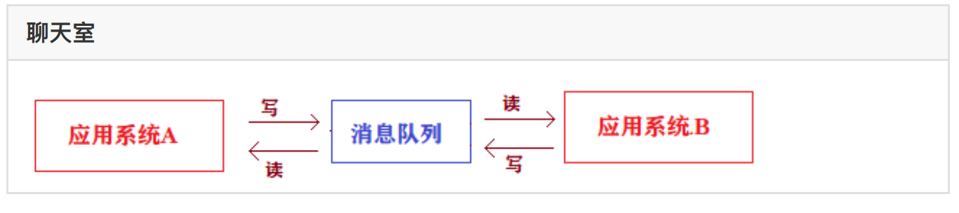 场景说明:应⽤系统之间的通信,例如聊天室