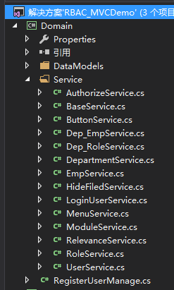 后端就两个项目,非常简单。Domain层就一个服务是对上篇的进行二次封装,以持久化到数据库,另外一个是登陆用户服务类这两个类比较特别。其它都是一般的服务。这两个点是根据业务和数据库变化的。