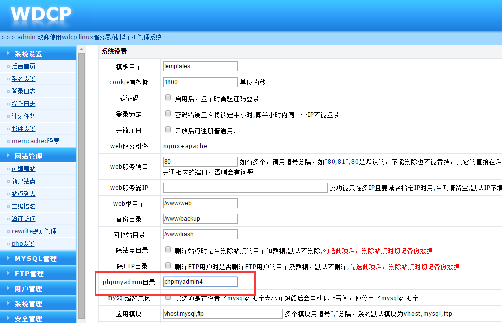 最近有人抱怨wdcp里的phpmyadmin版本太低。。。我也觉得是。。就想办法去升级了下。。成功了。。把我的方法分享给大家 1、首先进入PHPMYADMIN的官网 https://www.phpmyadmin.net/downloads/...